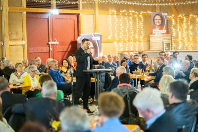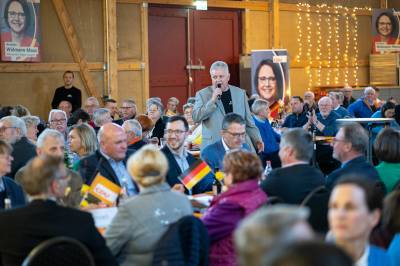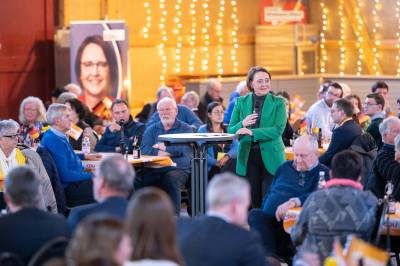 Nach vier Jahren Corona-bedingter Pause war es am Dienstagabend endlich wieder so weit: Die Tübinger Bundestagsabgeordnete Annette Widmann-Mauz und die CDU im Steinlachtal luden ein zum traditionellen Starkbierfest. Und darauf hatten viele gewartet: Mit über 250 Besucherinnen und Besuchern, darunter der Europaabgeordnete Norbert Lins, Landrat Joachim Walter und Bürgermeister Egon Betz sowie der CDU-Kreisvorsitzende Christoph Naser, war die Musikantenscheune in Nehren bis zum letzten Platz gefüllt. Mit dem obligatorischen Starkbier der Kronenbrauerei Schimpf aus Neustetten und der musikalischen Begleitung durch den Musikverein Nehren war es ein hochspannender, zünftiger Abend in entspannter Townhall-Atmosphäre, der ganz im Zeichen der aktuellen außen- und sicherheitspolitischen Herausforderungen und den Folgen des Ukraine-Krieges für Deutschland und Europa stand.