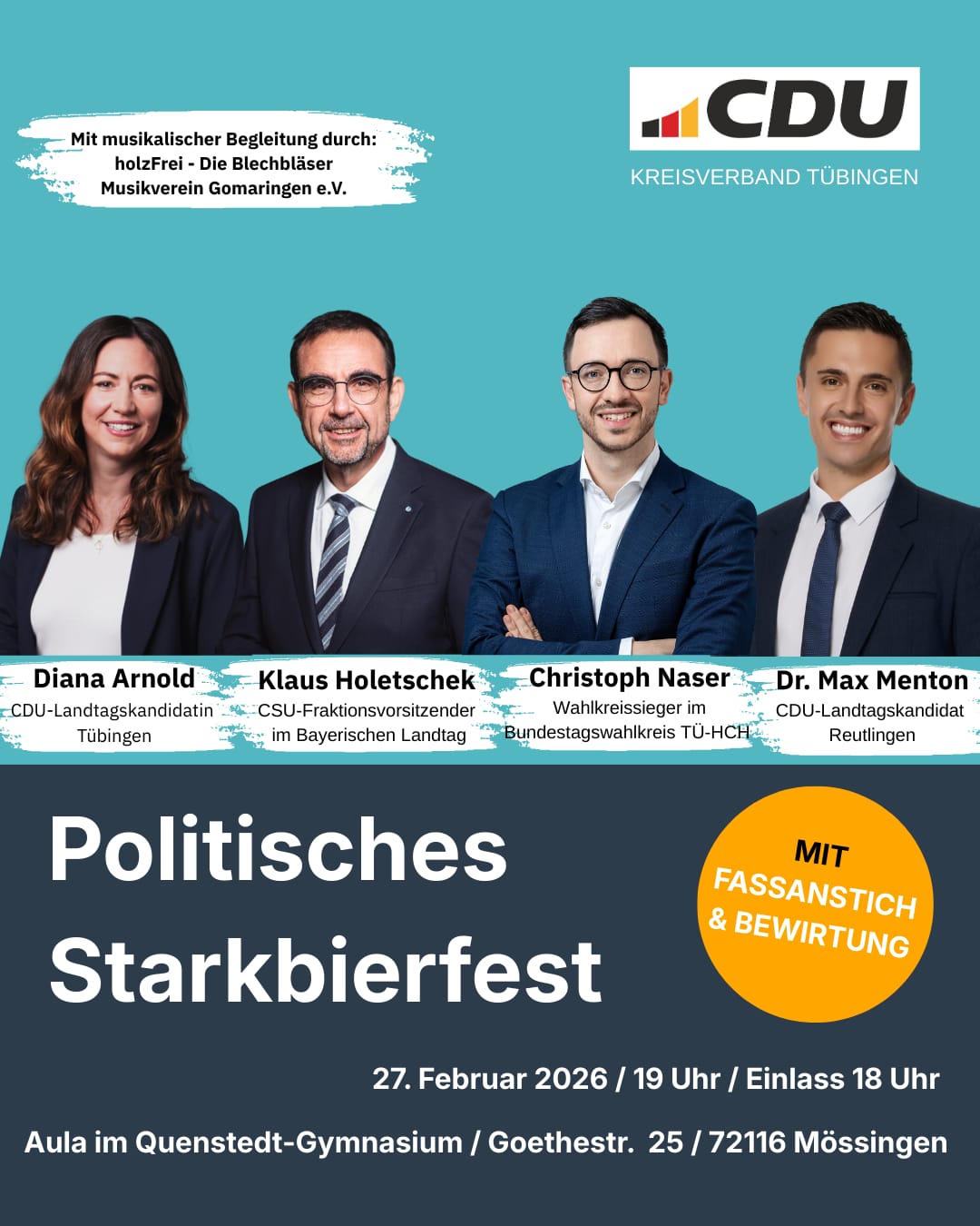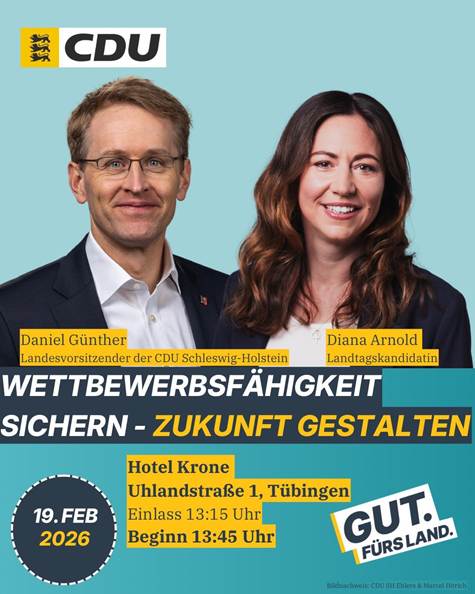 Jetzt Mitglied werden & gewinnen! 🎉 Werde Teil der CDU Tübingen ? Gewinnspiel für Neumitglieder! 📅 Zeitraum: 1. - 31. Dezember 2024 🎁 Gewinne exklusive Erlebnisse & Geschenke ? z.B. ✈️ Rundflug über den Landkreis mit Klaus von Hochmeister 🍞 Backkurs mit Jörg Schmid 🍯 Honiglieferung von Meinrad Göhner 🍫 Handgemachte Pralinen von Harald Künstle So einfach geht?s: 1. CDU-Mitglied werden 2. Teilnahme am Gewinnspiel sichern 3. Viel Glück! 🍀
