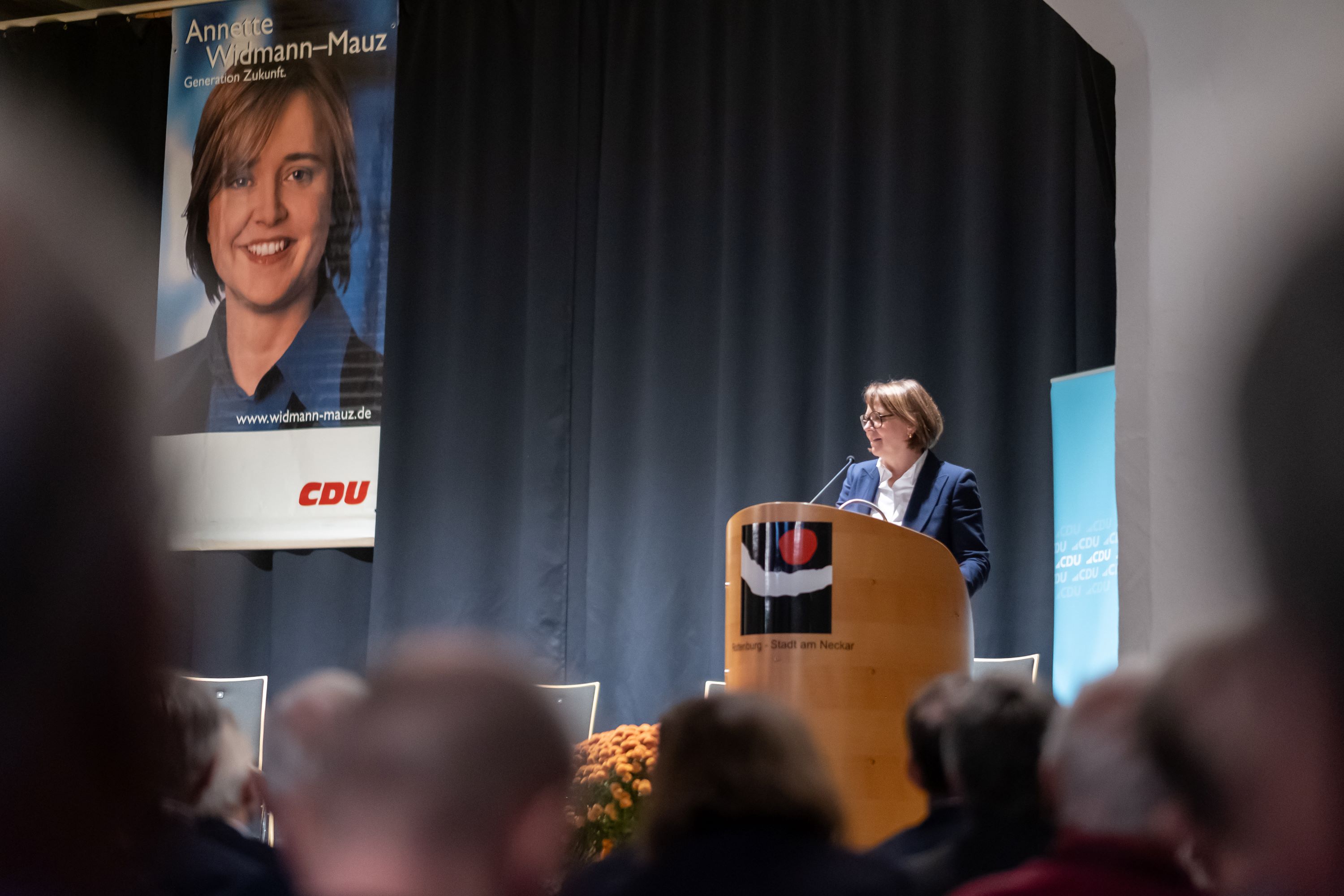 In der Rottenburger Zehntscheuer kamen am vergangenen Samstag zahlreiche Gäste zusammen, um Annette Widmann-Mauz für ihr jahrzehntelanges politisches Wirken zu ehren. Bundes- und Landespolitiker, Landräte, Bürgermeister, Persönlichkeiten aus Wirtschaft und Gesellschaft sowie viele Parteifreunde würdigten gemeinsam die 27 Jahre Engagement im Deutschen Bundestag und den unermüdlichen Einsatz für den Wahlkreis Tübingen-Hechingen.
