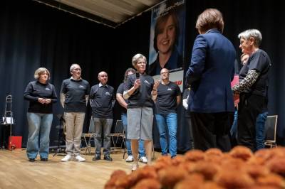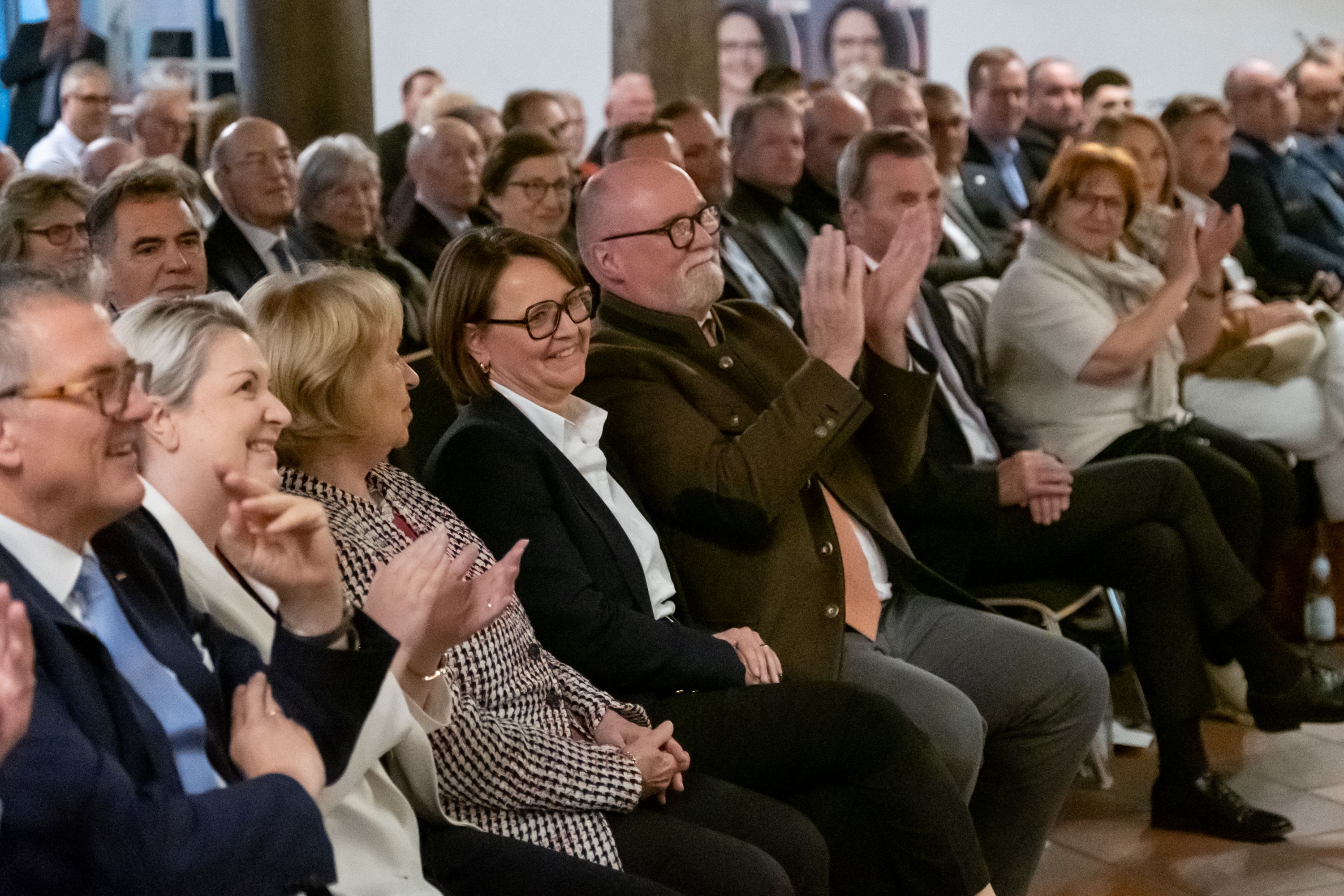 Bereits die festlich gestaltete Zehntscheuer machte die Bedeutung dieses außergewöhnlichen politischen Weges spürbar: Werbematerialien und Plakate aus sieben Wahlkämpfen erinnerten an wichtige Etappen der vergangenen Jahrzehnte. Wahlkampfvideos und Bilder - auch aus den verschiedenen Regierungsämtern von Annette Widmann-Mauz - gaben einen Überblick über das vielfältige Engagement in Berlin wie auch im Wahlkreis Tübingen-Hechingen.