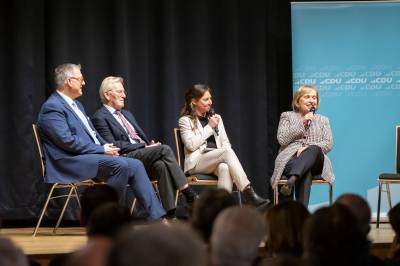 In Gesprächsrunden und Grußworten wurde deutlich, welche Spuren sie in Partei und Frauen Union, Parlament und Regierung hinterlassen hat. Zu Wort kamen unter anderem Staatsministerin a.D. Maria Böhmer, der langjährige Landtagsabgeordnete Heinrich Hassis, Bundestagskollege Michael Donth und viele weitere Wegbegleiterinnen und Wegbegleiter. Auch Ministerpräsident a.D. Günther Oettinger würdigte in seiner Ansprache das politische wie persönliche Engagement von Annette Widmann-Mauz.